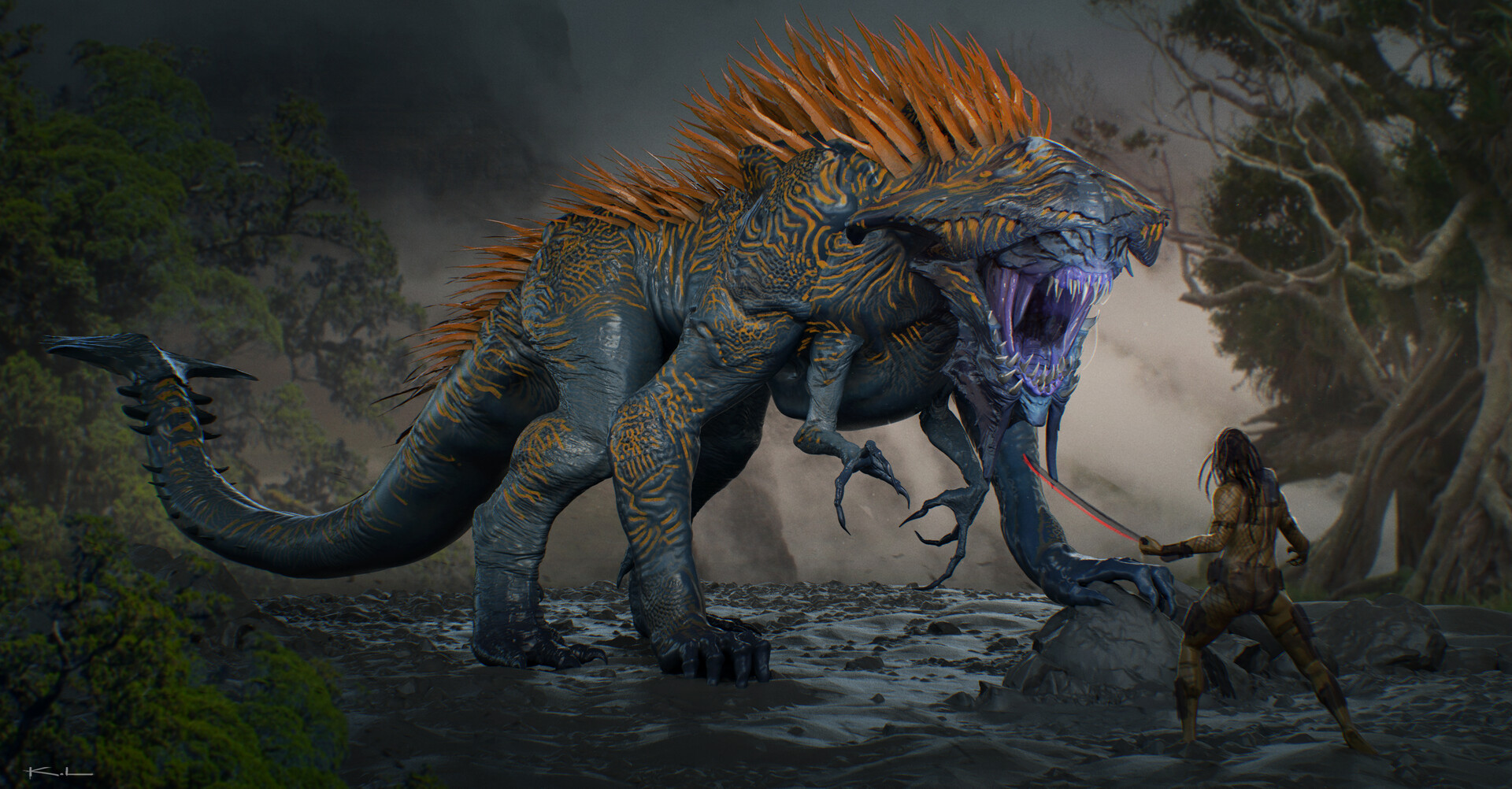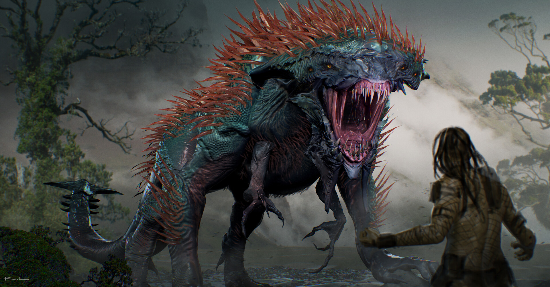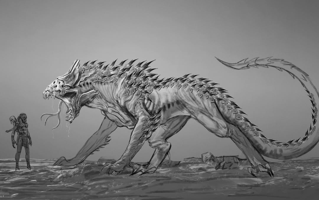 Early development of the Kalisk creature concept design in Predator – Badlands.