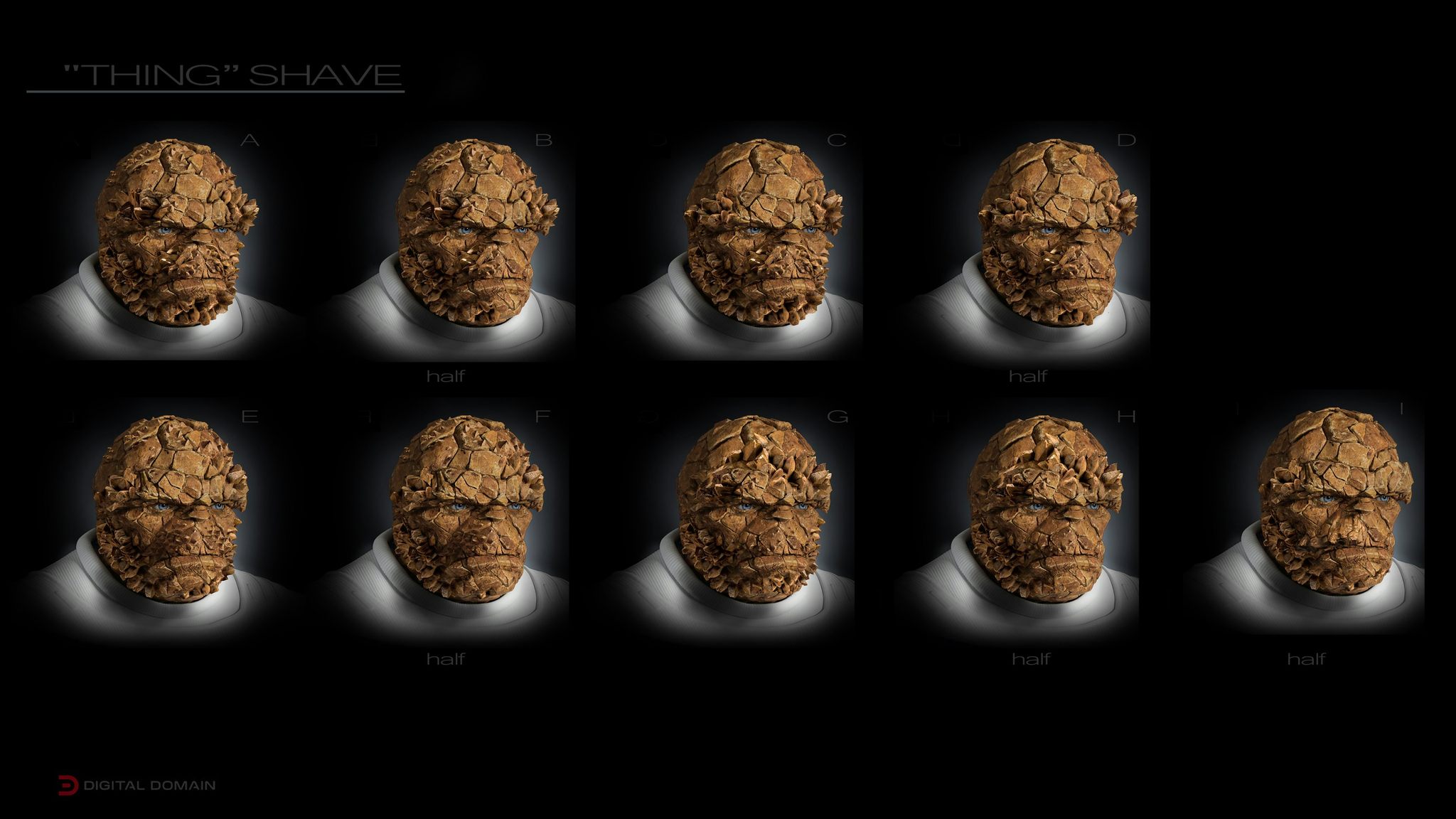 This incredible concept art by Mitchell Stuart (https://www.artstation.com/mitcharts) for Fantastic Four: First Steps explores just that! Titled “THING” SHAVE, this series of images gives us a detailed look at different “stubble” ideas for Ben Grimm’s rocky face.