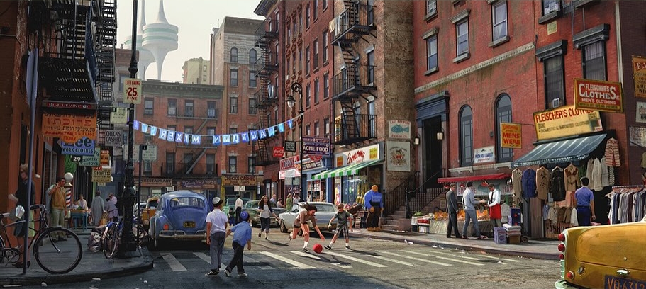 Keyframe illustration from the concept art for Fantastic Four: First Steps, created by Joe Studzinski (https://www.instagram.com/joe.studz/).