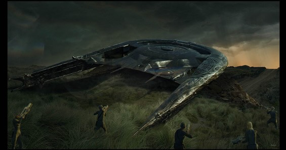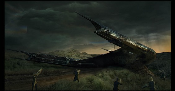 its sharp, predatory silhouette emerging from the landscape as if the planet itself is rejecting it.