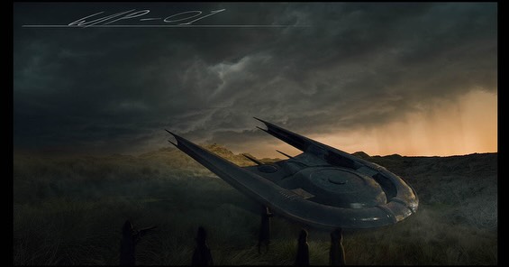 its sharp, predatory silhouette emerging from the landscape as if the planet itself is rejecting it.