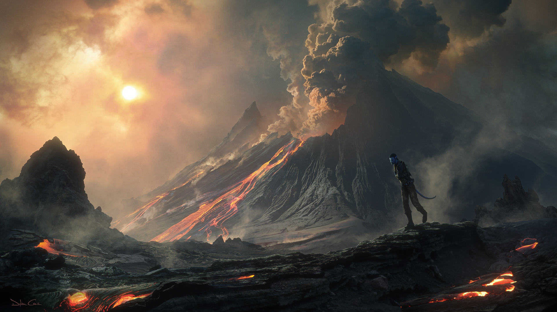 This Volcanic Wasteland concept art captures the raw, unforgiving beauty of Pandora’s darker side—lava rivers, choking smoke, and a lone Na’vi standing against a world shaped by destruction.
